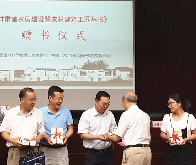 由我公司和甘肃省老科学技术工作者协会共同主编完成的《甘肃省农房建设暨农村建筑工匠丛书》(以下简称《丛书》)于2019年7月正式出版发行,并于7月30日在兰州举行了赠书仪式。甘肃省科协、省市发改、资源、环保、住建、工信、科技、墙改等政府部门的代表,以及甘肃省土木建筑协会、省建材行业协会等相关协会的代表共120多人参加了本次仪式。甘肃省老科学技术工作者协会会长刘祖和和公司党委书记、董事长、总经理董红健为大家进行现场赠书。