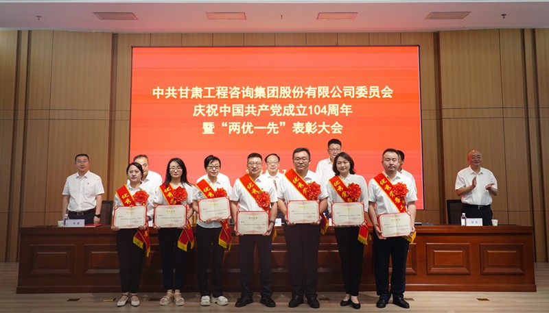 7月1日,甘肃工程咨询集团召开庆祝中国共产党成立104周年暨“两优一先”表彰大会,回顾党的辉煌历程,弘扬伟大建党精神,全面展示集团党建工作成效和党员干部昂扬风貌,激励各级党组织和全体党员凝心聚力、担当作为,奋力推动集团公司高质量发展迈向新台阶。集团公司党委书记、董事长张佩峰出席并讲话,总经理、董事陈一夫及在家领导班子成员出席,纪委书记、监察专员师宗正主持会议。